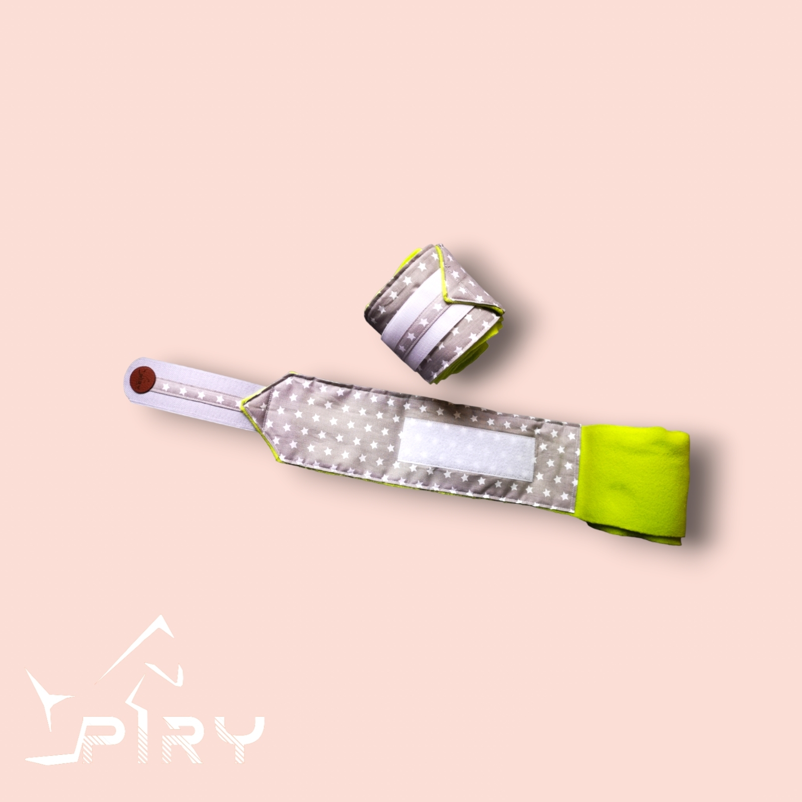 Szürke alapszínű polár fásli mintás pamut díszítéssel, erős tépőzárakkal