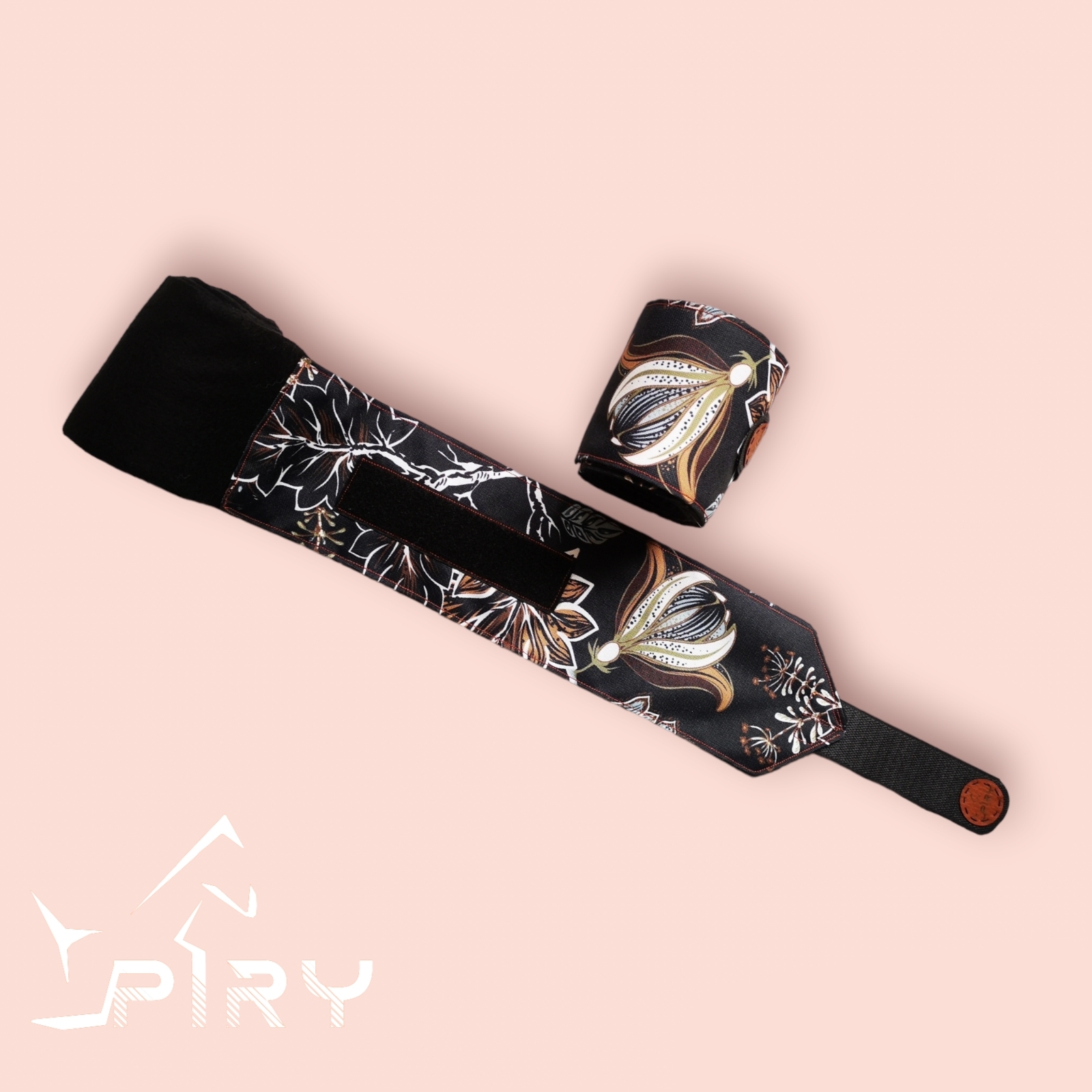 Fekete alapszínű polár fásli mintás pamut díszítéssel, erős tépőzárakkal