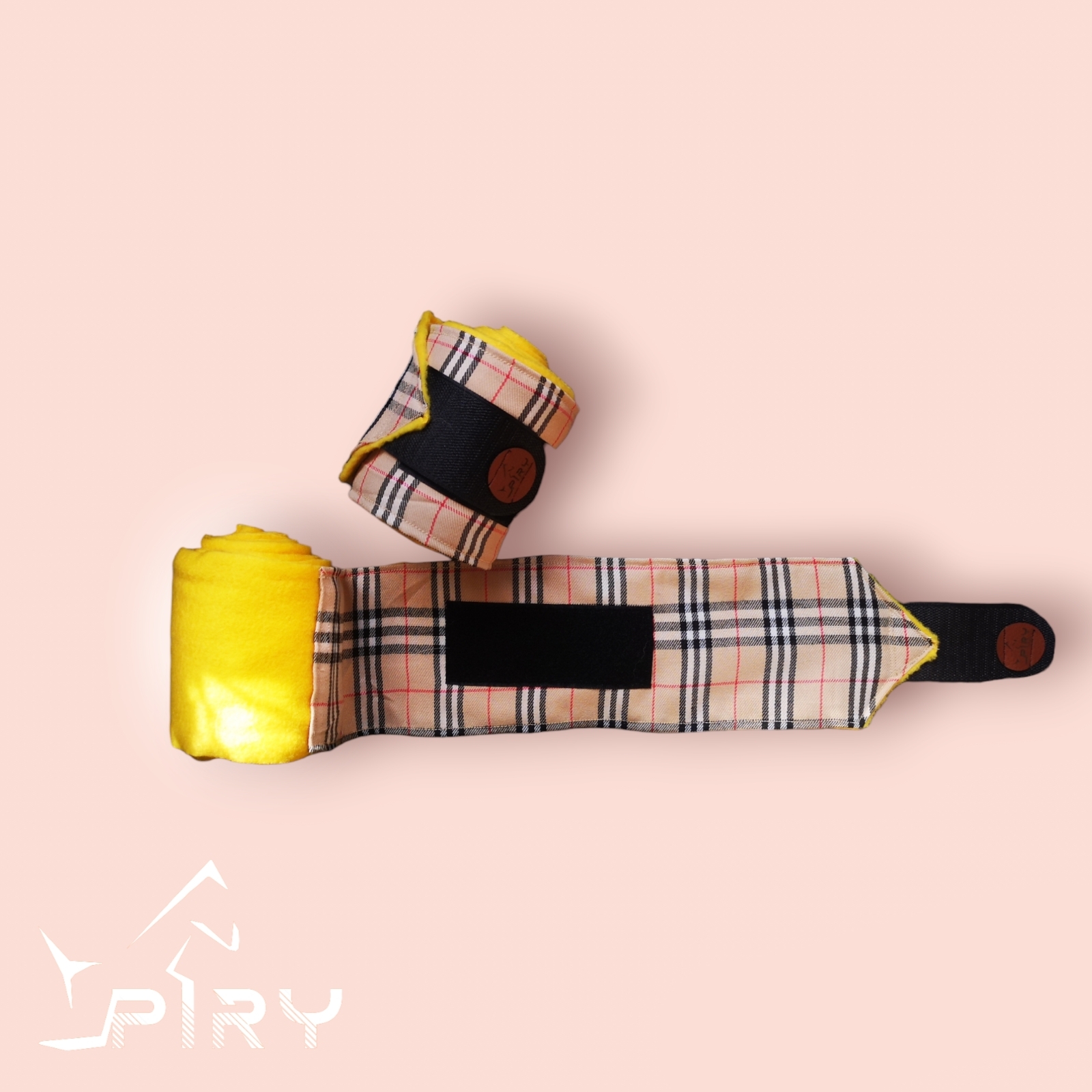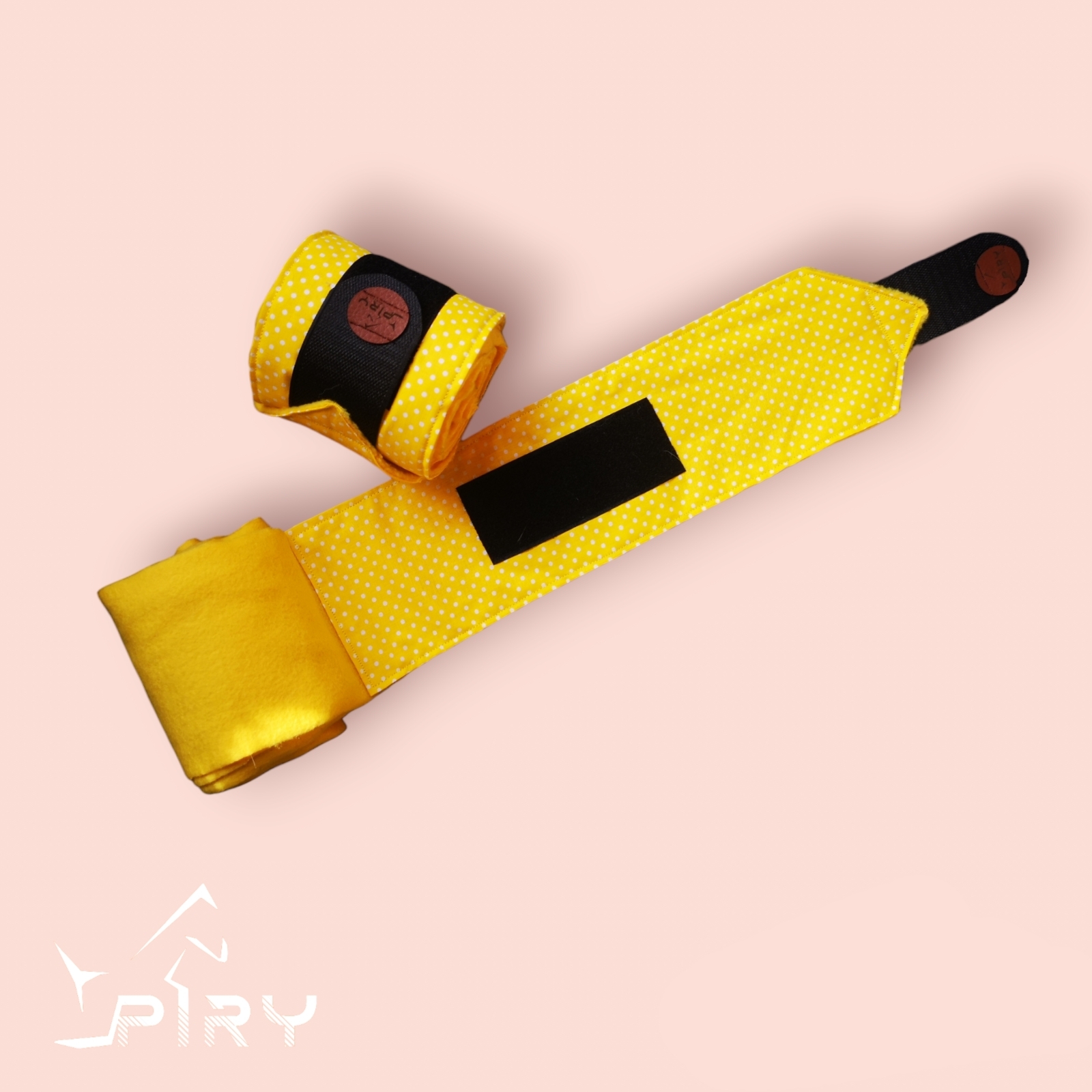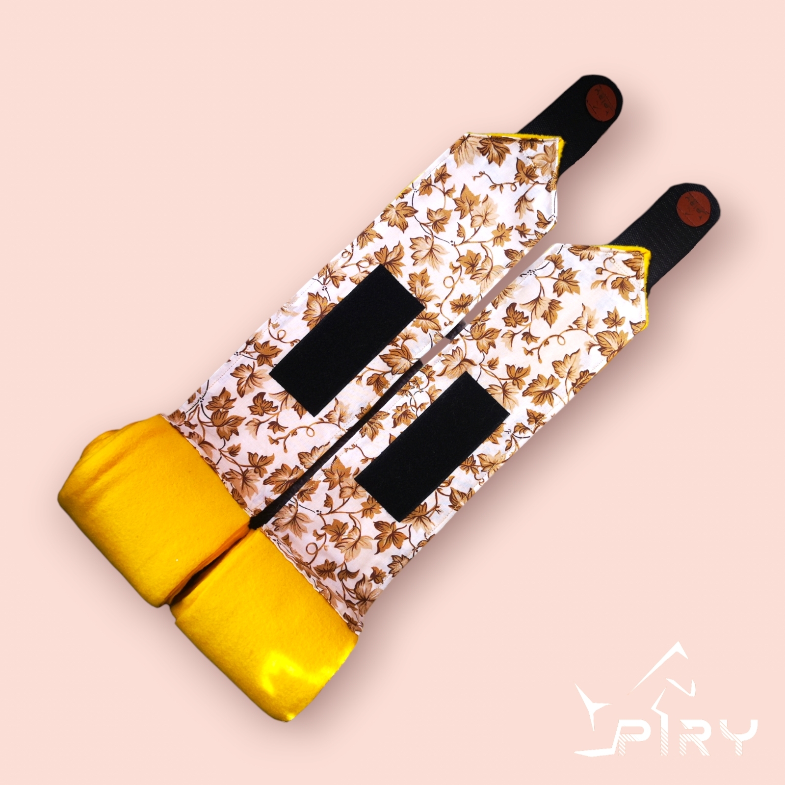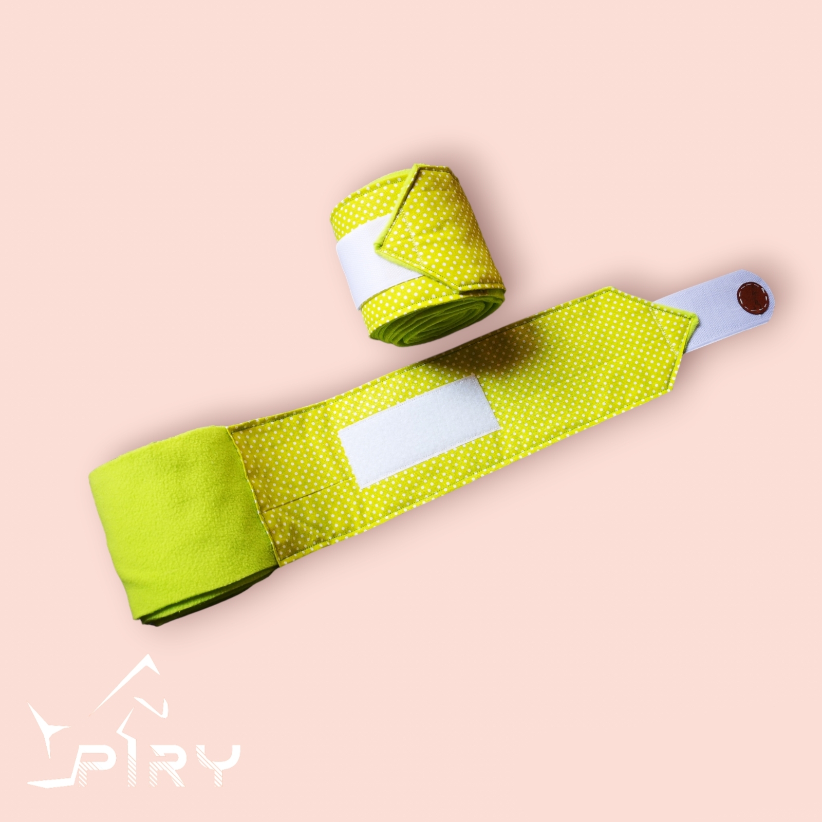Sárga alapszínű polár fásli mintás pamut díszítéssel, erős tépőzárakkal